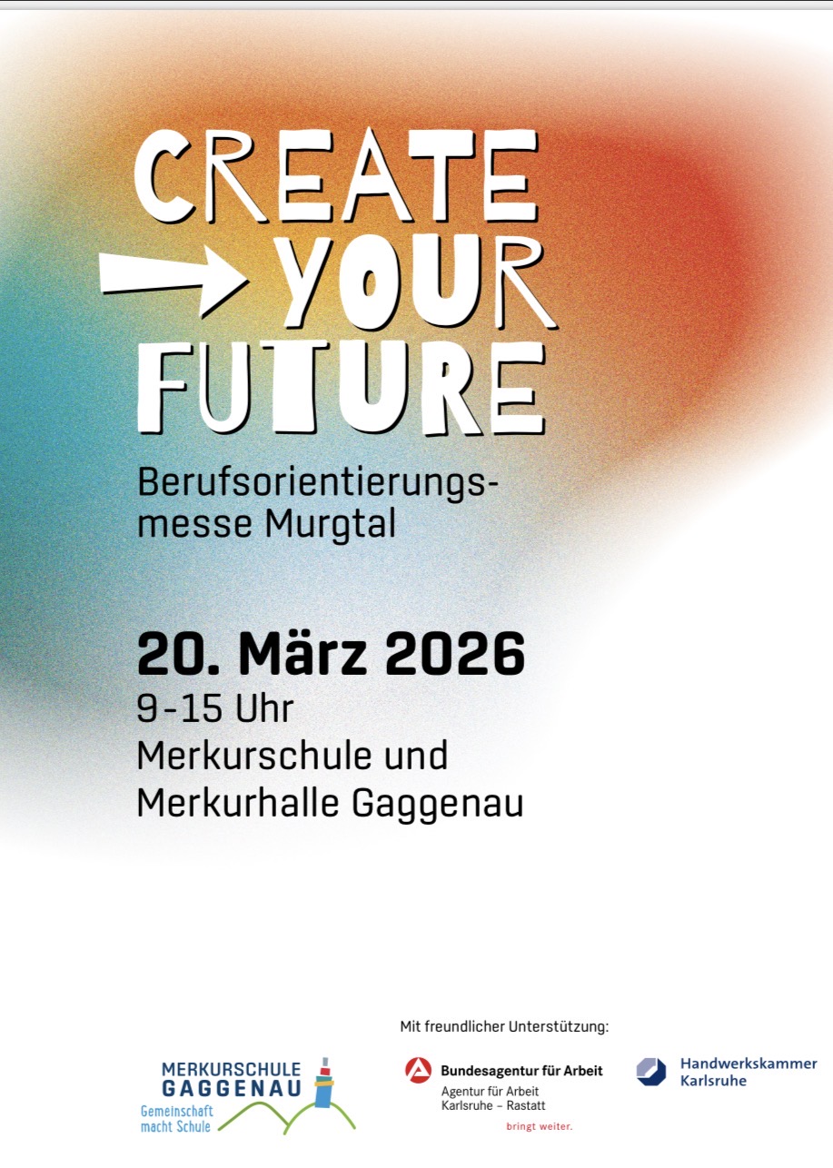 Die Merkurschule Gaggenau veranstaltet in Kooperation mit der Agentur für Arbeit Karlsruhe-Rastatt und der Handwerkskammer Karlsruhe erstmals die Berufsorientierungsmesse „Create your Future“.